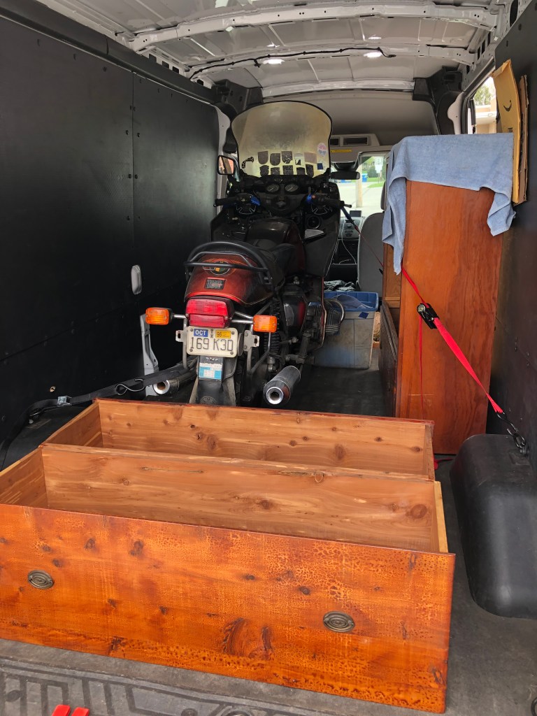 Nancy picked up a piece of furniture and other items. So I drove the van home unloaded the R75, then came back for the R100RT and Nancy’s stuff.